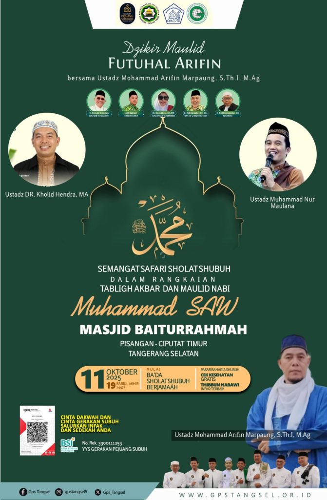 Yayasan Gerakan Pejuang Subuh Tangerang Selatan (Y-GPS) sebuah inisiasi yang tepat di saat umat membutuhkan sesuatu yang selama ini pernah hilang dan kini telah kembali.β